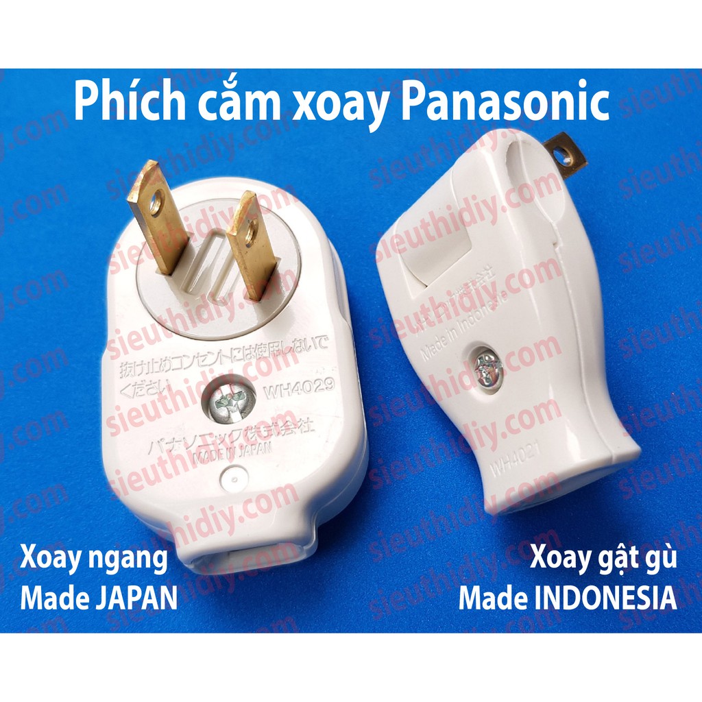 Phích cắm Panasonic Nhật xoay ngang, xoay gật gù 180 độ:- Dùng tốt với điện lưới 220VAC Việt Nam.