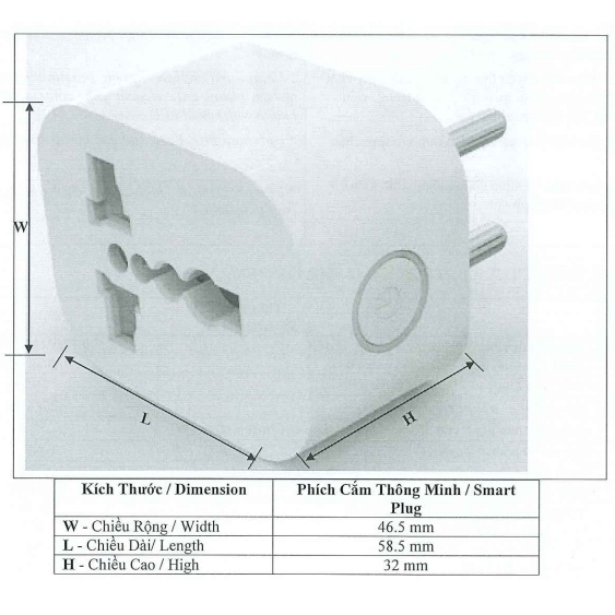 - Kích thước sản phẩm: 46.5 x 58.5 x 32mm