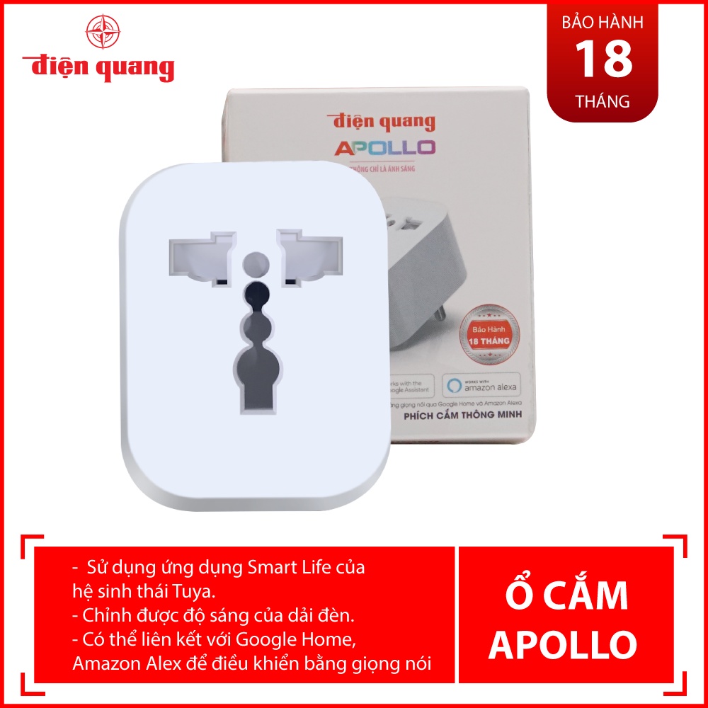 Thiết Bị Điện Gia Dụng > Mạch điện & Phụ tùng > Ổ cắm điện & Dây nối || Phích cắm thông minh Điện Quang Apollo ĐQ SP1.1 01 Wifi Kiểu 1 lỗ, sử dụng wifiCòn hàng