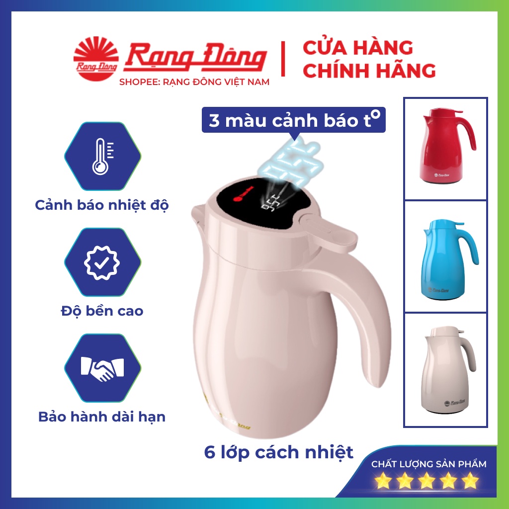 Phích nước Rạng đông 1,5 lit, Phích pha trà hiển thị nhiệt độ thông minh, Bình thuỷ giữ nhiệt RD-1542 N3.E