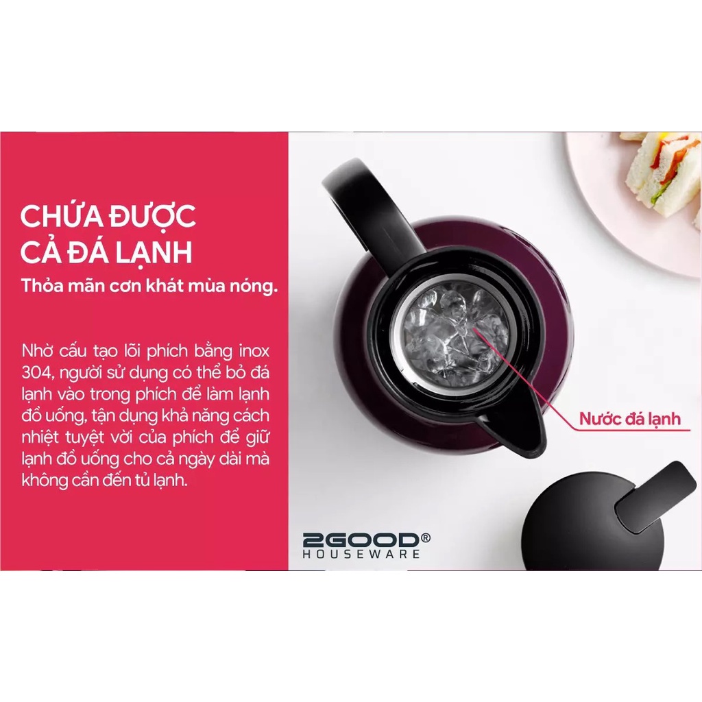 Phích Pha Trà 2Good, Bình Giữ Nhiệt, Bình Ủ 2GOOD FLASK B16 (1.8L) Giữ Nhiệt Nóng và Lạnh Suốt 24hCam kết hàng chính hãng 100% của 2GOOD Việt Nam