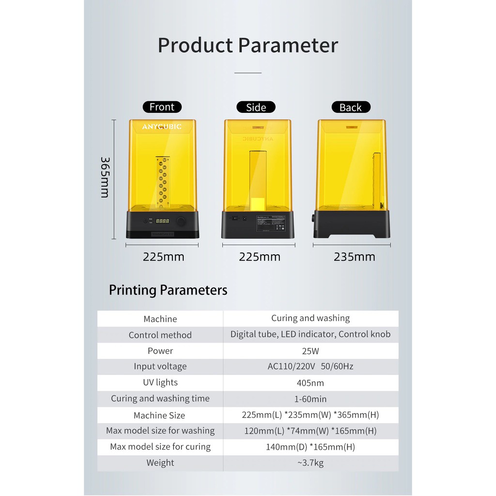 Sản phẩm này cung cấp giải pháp 2in1 cho mọi người làm việc với máy in SLA, DLP hoặc LCD. Nó là một máy rửa và chiếu tia UV làm cứng cùng một lúc!