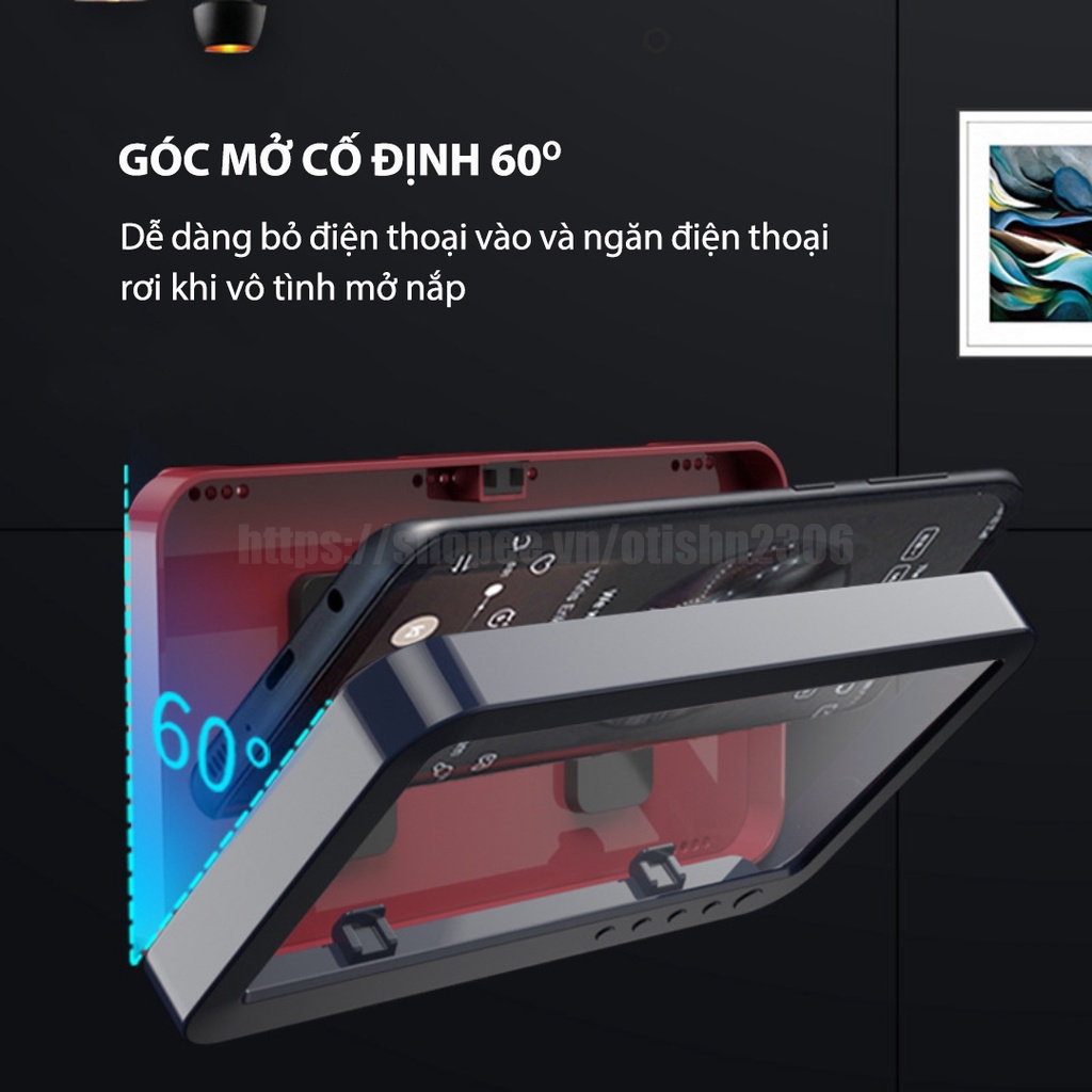 👉Bước 3: Nhấn vào phần viền phía trên của hộp để mở nắp. Cho điện thoại vào rồi đóng nắp lại và sẵn sàng sử dụng.