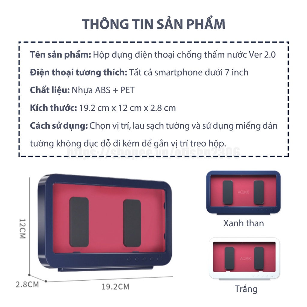 Hộp Đựng Điện Thoại Chống Thấm Nước, Quay 180 Độ - Dán Tường Không Đục Lỗ - Cảm Ứng Nhạy - Giá Đỡ Điện Thoại Nhà Tắm, Bếp📍THÔNG TIN SẢN PHẨM: