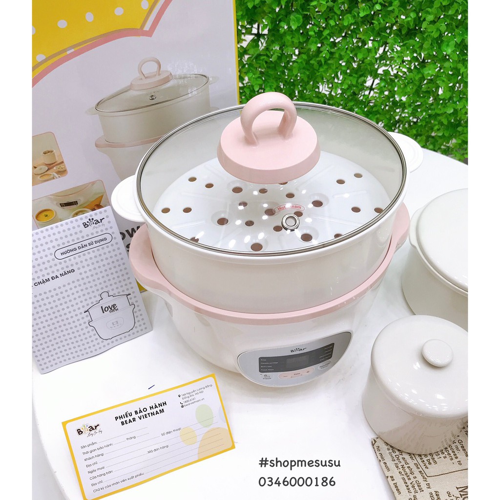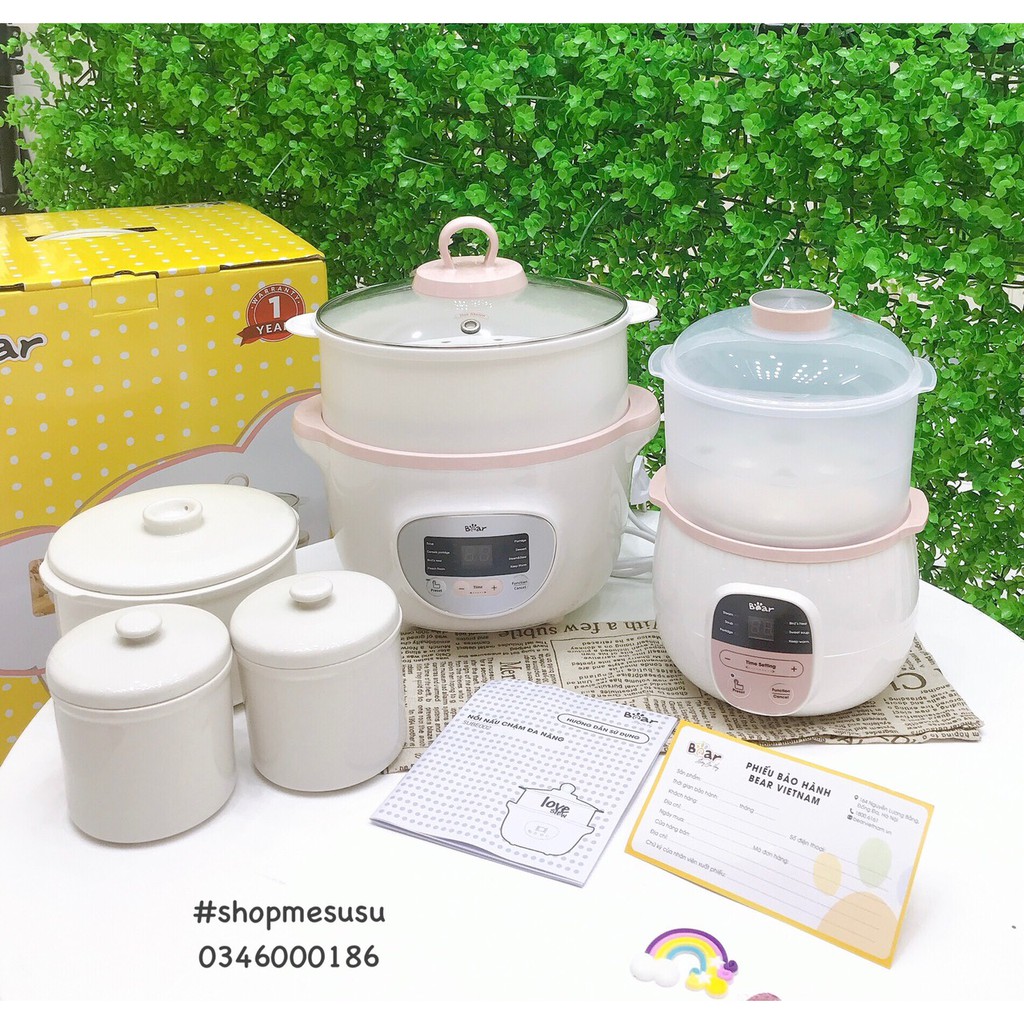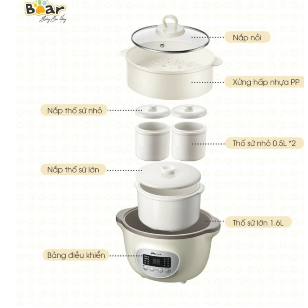 Giới thiệu (Phiên bản quốc tế BH 18 tháng) Nồi nấu cháo Bear 1,6L cho bé - cho gia đình loại 3 thố chính hãng
