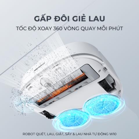 Dreame Bot W10 là một hệ thống hút bụi, lau sàn và làm sạch tự động với quy trình hoạt động hoàn toàn khép kín, giúp tối ưu hoá trải nghiệm sử dụng của gia chủ.Dreame Bot W10 được thiết kế đặc biệt với tấm lau sàn xoay và lực hút tối đa lên đến 4,000 Pa, W10 có thể dọn sạch mọi loại bụi bẩn và vết bẩn cứng đầu trên sàn nhà một cách dễ dàng. Tấm lau được thiết kế để xoay 180 vòng mỗi phút, tạo áp lực 10N để làm sạch bất kì loại mặt sàn nào từ gỗ, kính đến gạch men… Nhờ vào thiết kế đặc biệt, W10 có thể tiếp cận sâu nhất đến các góc phòng, nơi mà nhiều máy hút bụi không thể chạm tới để làm vệ sinh. Chổi phụ lấy mảnh vụn ra khỏi khe tường, trong khi, đầu chổi lăn kích thước lên đến 19.2 cm sẽ hút sạch các bụi bẩn đó một cách hiệu quả và nhanh chóng.