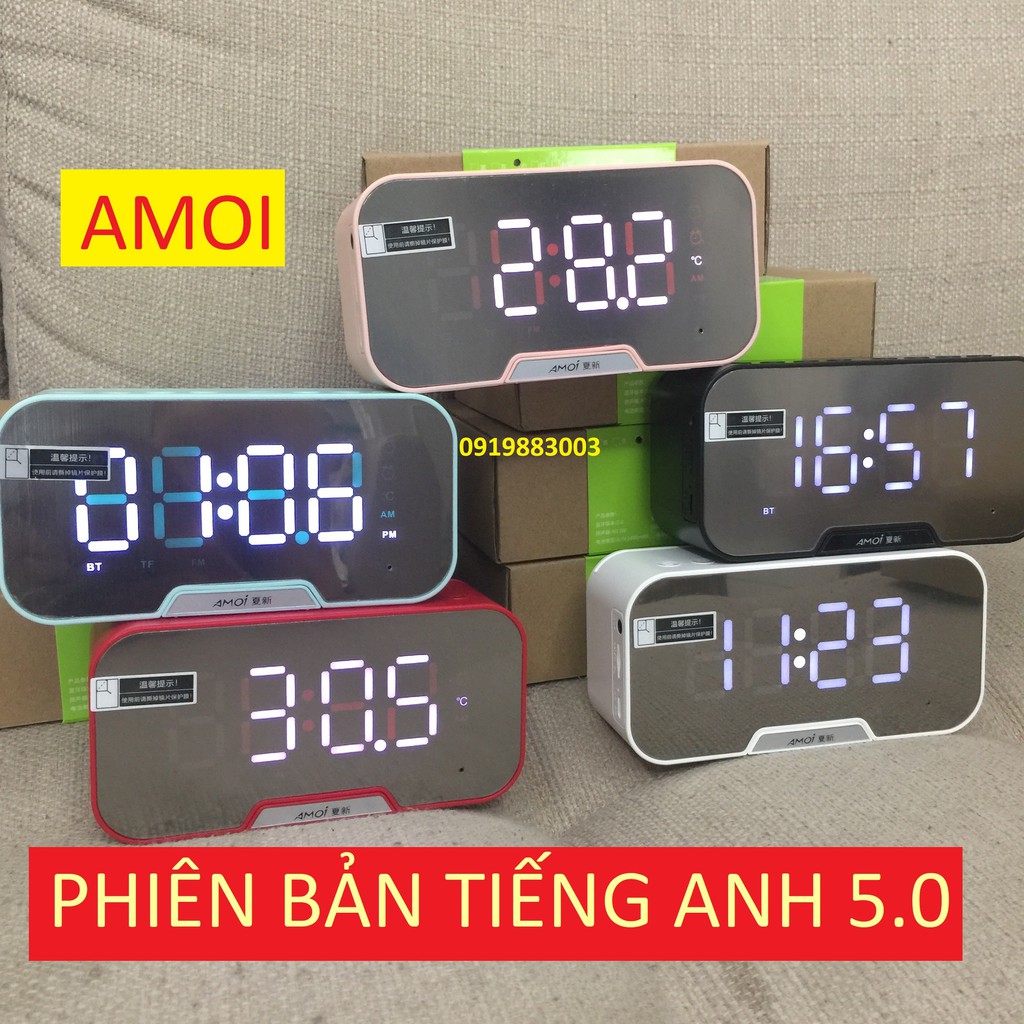 (Phiên bản tiếng Anh) Loa Bluetooth 5.0 AMOI nghe nhạc báo giờ báo thức soi gương siêu đẹp