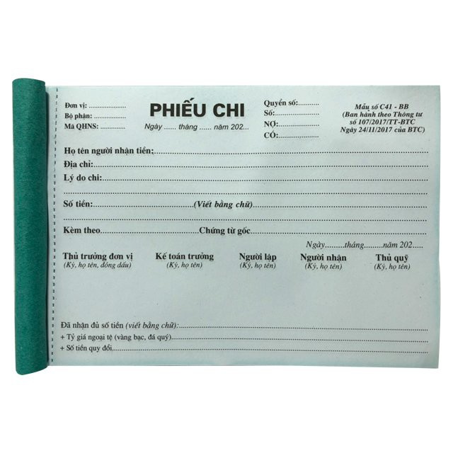 - Phiếu chi 1 liên mẫu số 02-TT Ban hành theo QĐ số 15/2006/QĐ BTC ngày 20/3/2006 của Bộ Trưởng BTC