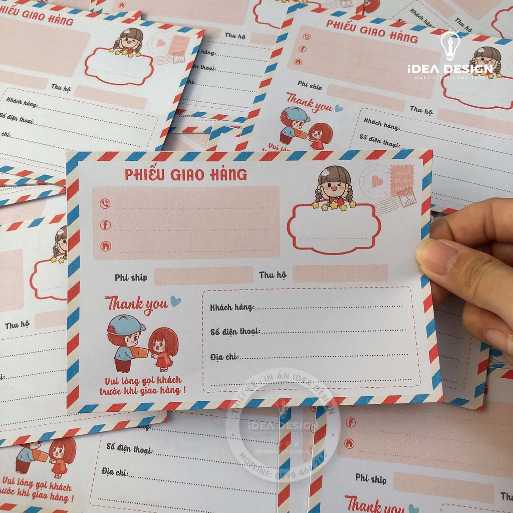 ⚜️ Đơn hàng là mục tiêu mà tất cả các shop bán hàng hướng tới, chỉ với giá thành rất nhỏ, (chỉ từ 300đ/tấm và sẽ rẻ hơn nếu in số nhiều). Các Shop đã có một phiếu ghi vận đơn dễ thương và tiện lợi. Vừa tăng giá trị cho đơn hàng và sản phẩm của mình vừa giúp khách hàng nhớ đến Shop, tăng tỷ lệ đánh giá tốt và tỷ lệ mua lại. Giảm những đánh giá kém và vội vàng từ khách vì khách sẽ liên hệ lại cho Shop nếu đơn hàng có vấn đề.