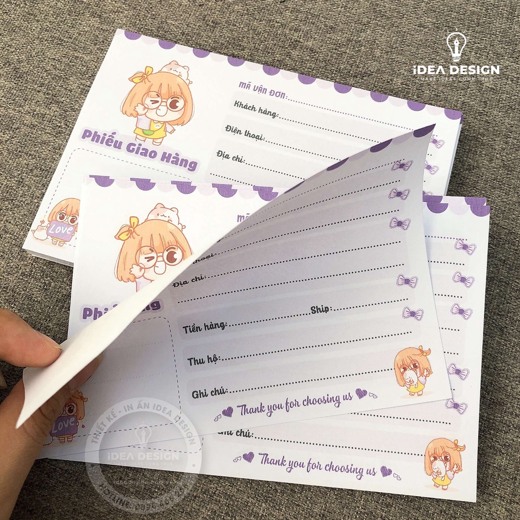 ⚜️ Đơn hàng là mục tiêu mà tất cả các shop bán hàng hướng tới, chỉ với giá thành rất nhỏ, (chỉ từ 300đ/tấm và sẽ rẻ hơn nếu in số nhiều). Các Shop đã có một phiếu ghi vận đơn dễ thương và tiện lợi. Vừa tăng giá trị cho đơn hàng và sản phẩm của mình vừa giúp khách hàng nhớ đến Shop, tăng tỷ lệ đánh giá tốt và tỷ lệ mua lại. Giảm những đánh giá kém và vội vàng từ khách vì khách sẽ liên hệ lại cho Shop nếu đơn hàng có vấn đề.
