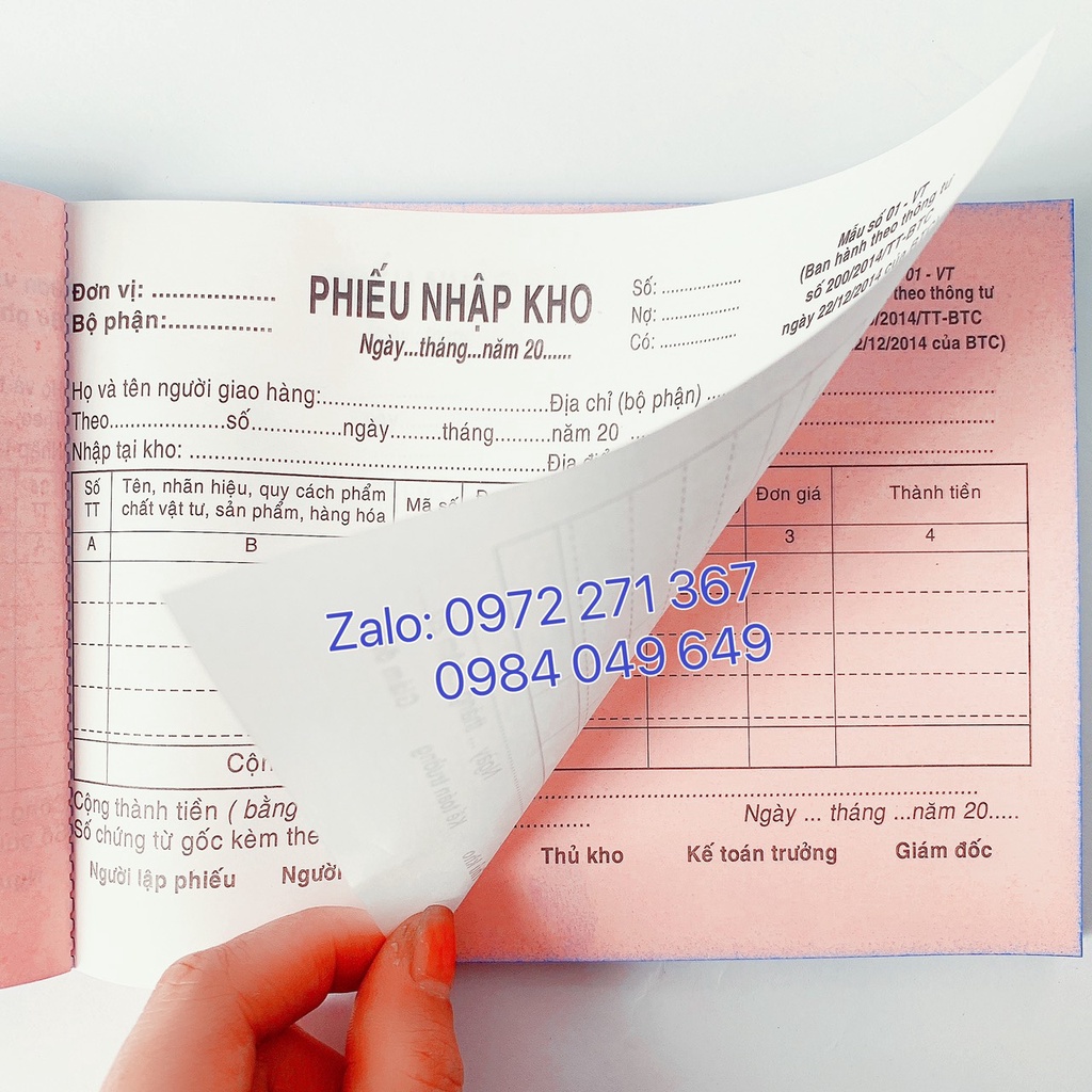 - Phiếu nhập kho - phiếu xuất kho 2 liên với chất liệu giấy cacbon dày dặn, giúp cho việc ghi chép và lưu lại chứng từ thuận tiện, dễ dàng mà không cần dùng đến giấy than- Loại dày: 100 tờ / quyển