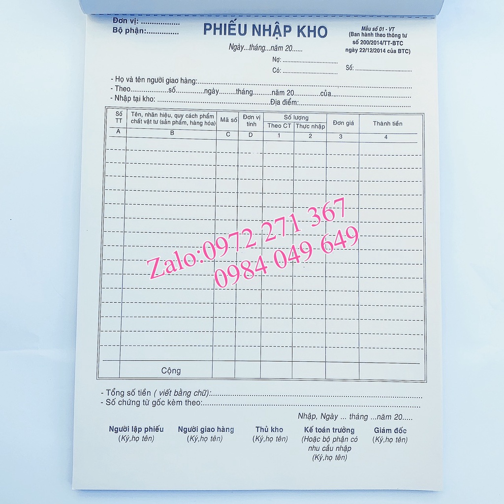- Phiếu nhập kho - xuất kho 2 liên với chất liệu giấy cacbon dày dặn, giúp cho việc ghi chép và lưu chứng từ thuận tiện, dễ dàng mà không cần dùng đến giấy than- Loại dày: 100 tờ / quyển