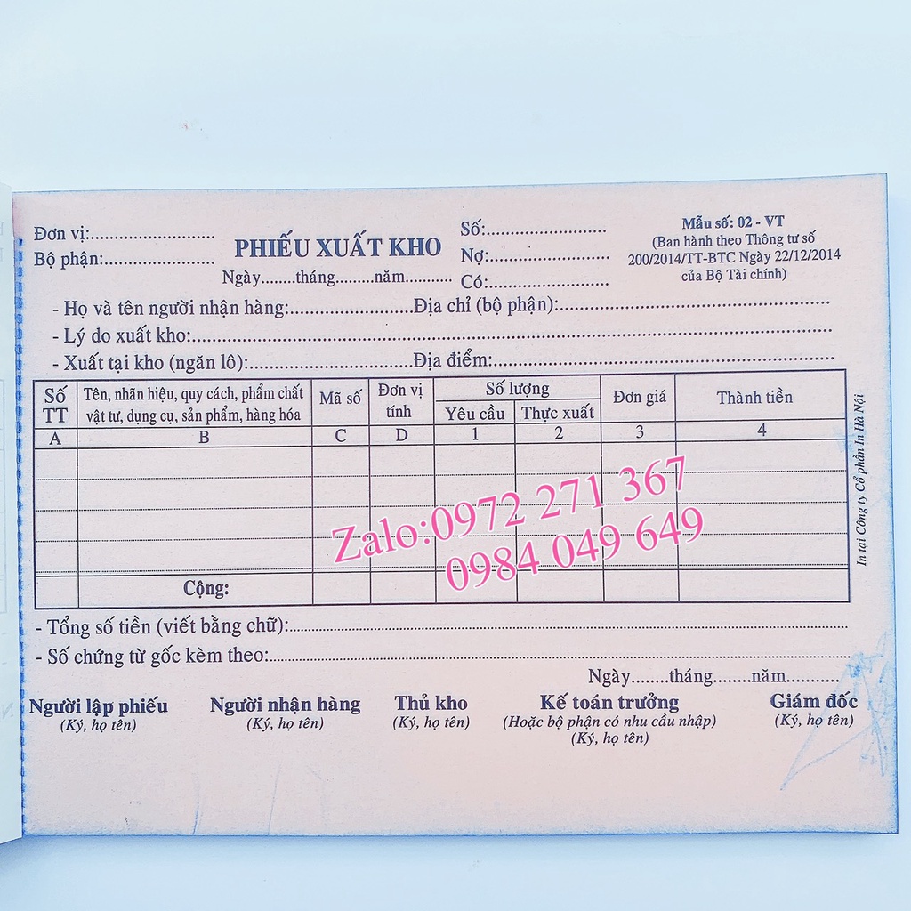 Văn Phòng Phẩm > Sổ & Giấy Các Loại > Giấy In || Phiếu nhập kho - xuất kho 3 liên A5 60 - 100 tờCòn hàng