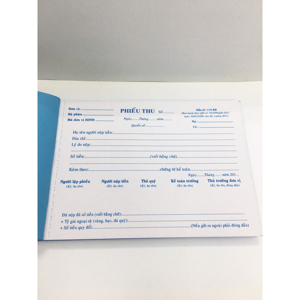 Phiếu thu 2 liên giấy cacbonless 13x19 quyển có 50 bộ trắng xanhPhiếu chi 2 liên giấy cacbonless 13x19 quyển có 50 bộ trắng hồng