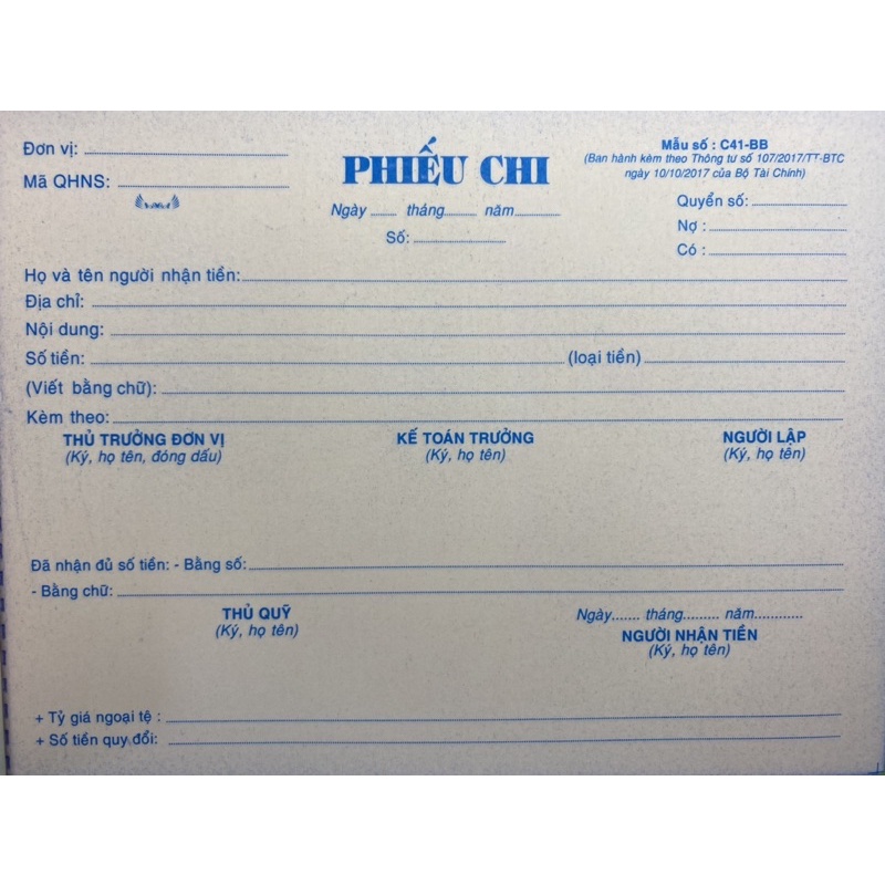 Chất liệu giấy tốt, độ bám mực cao, lâu phai và hoàn toàn không bị lem nhòe. Phiếu chứa đầy đủ các thông tin cần thiết, chữ in rõ ràng đảm bảo các yêu cầu công việc thanh toán. Kích thước 13 x 19cm nhỏ gọn, là khổ giấy thông dụng của các loại phiếu hiện nay.Lh: 0903.316.146