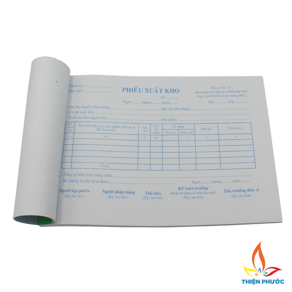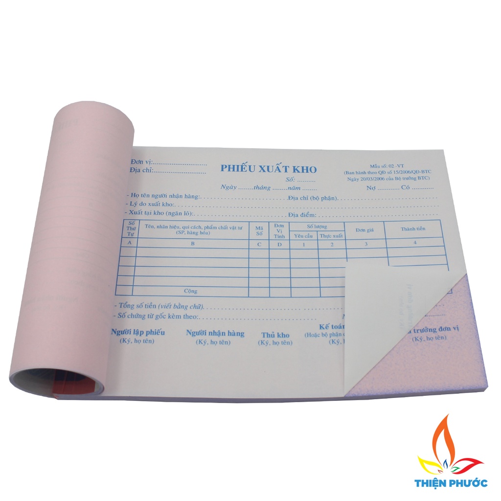- Là sản phẩm Phiếu xuất nhập kho được in trên loại giấy ford và giấy carbon 2 liên khổ 13x19cm , ban hành theo QĐ số 15/2006/QĐ-BTC ngày 20/3/2006 của Bộ trưởng Bộ Tài Chính, giúp ghi lưu đầy đủ thông tin trong công việc nhập hàng hóa ra khỏi kho.