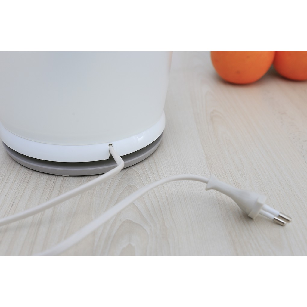 Tiết kiệm không gian nhờ hệ thống bảo quản dây dẫn tiện lợi dưới vỏ với máy vắt cam và an toàn khi sử dụng.
