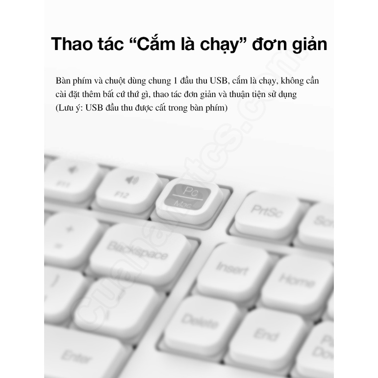 - Hộp gồm: Bàn phím + Chuột + 4 viên pin số 7(tùy lô có kèm pin hoặc không kèm)