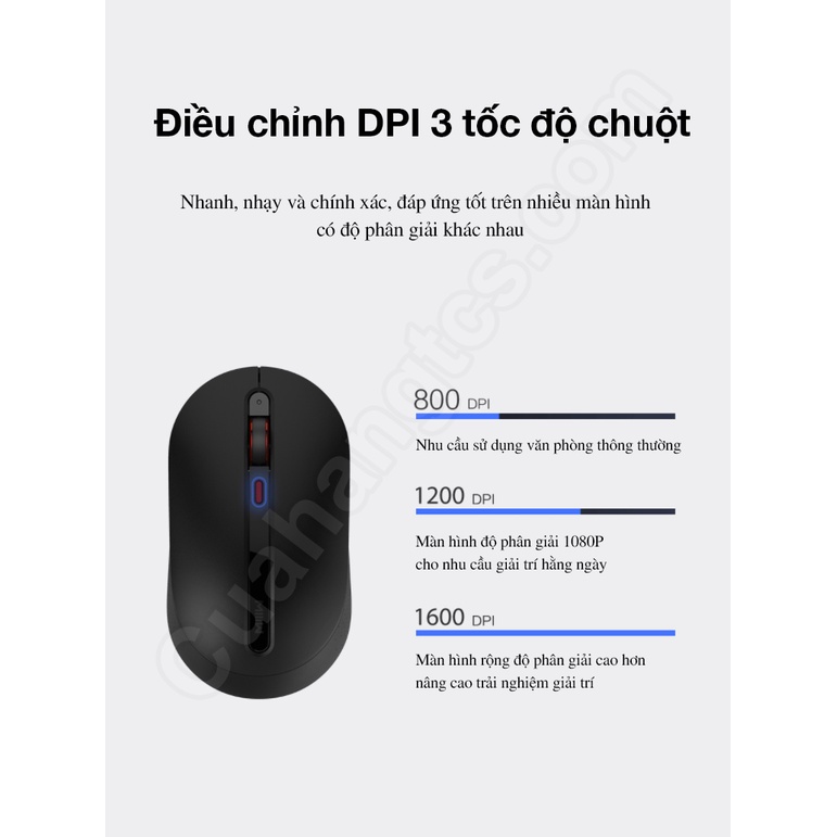 >Chuột MIIIW còn được trang bị khả năng điều chỉnh DPI 3 tốc độ. Cụ thể mức đầu tiên 800DPI đáp ứng cho nhu cầu sử dụng trong môi trường văn phòng thông thường, mức 1200DPI cho màn hình độ phân giải 1080P đáp ứng nhu cầu giải trí hằng ngày và cuối cùng là mức 1600 DPI cho màn hình rộng có độ phân giải cao.