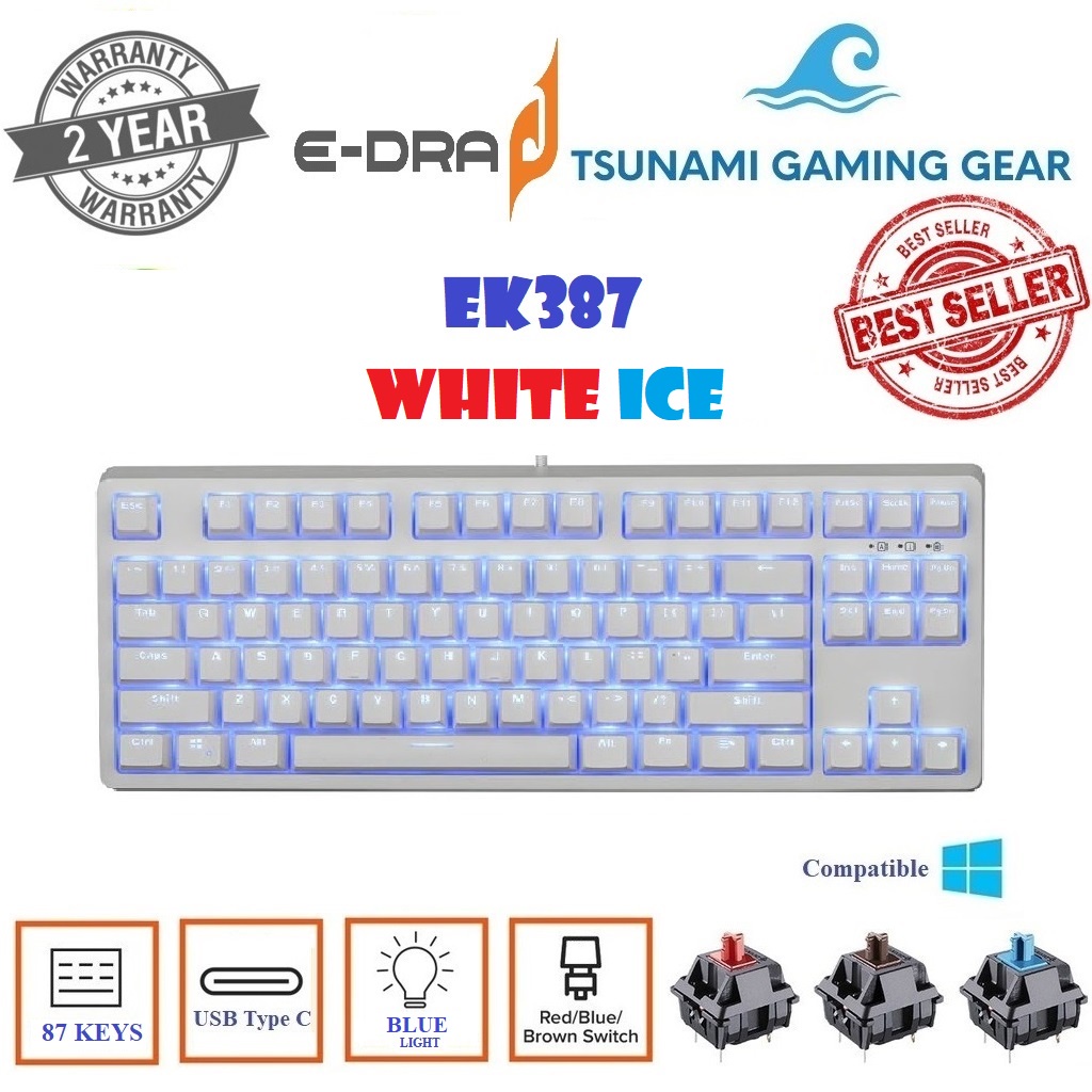 Máy tính & Laptop > Chuột & Bàn Phím > Bàn Phím Máy Tính || Phím cơ E-Dra EK387 White Ice case trắng/ led xanh cực chất version 2021 (Blue/ Brown/ Red Switch) BH 2 nămCòn hàng