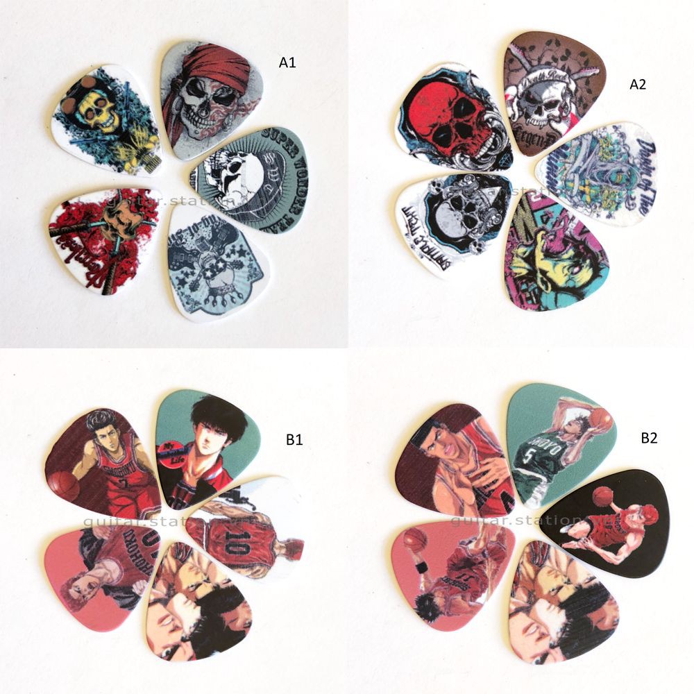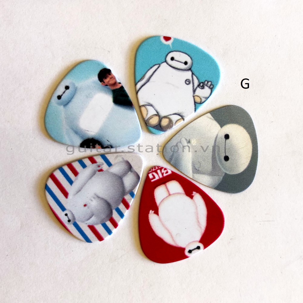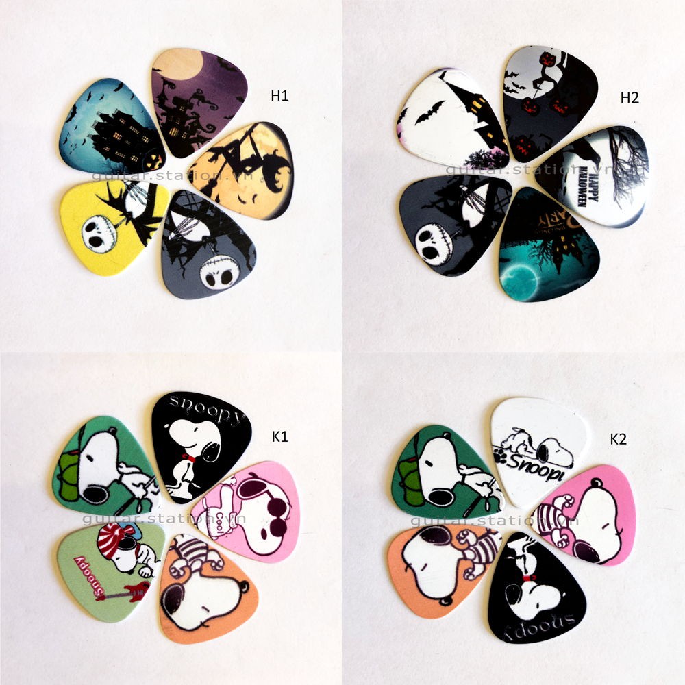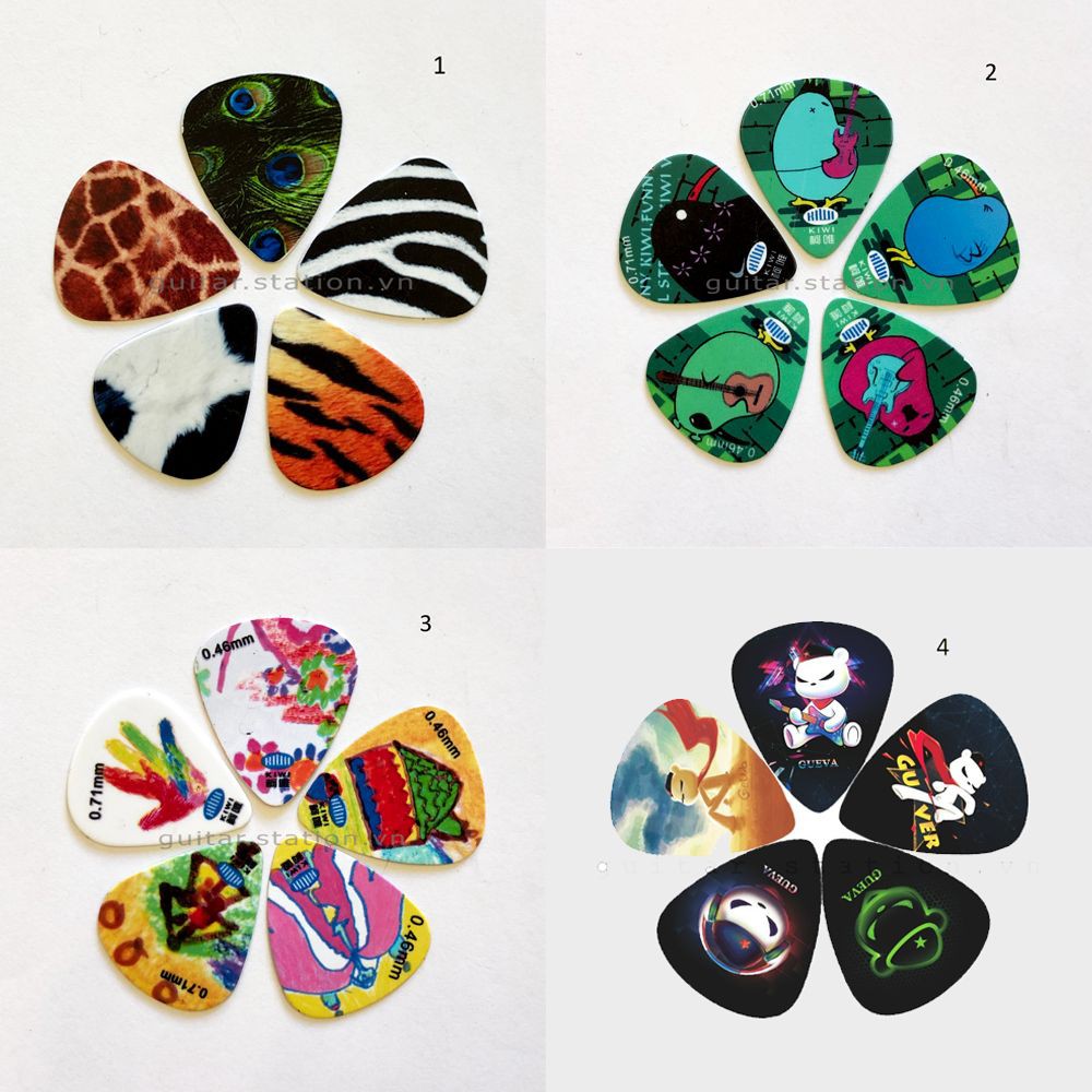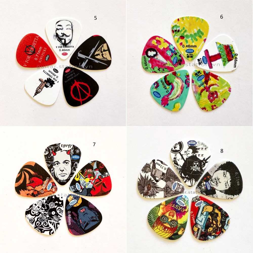 Một bộ gồm 6 pick được in nhiệt chất lượng cao theo chủ đề, độ dày đa dạng và độ bền cực kì cao.
