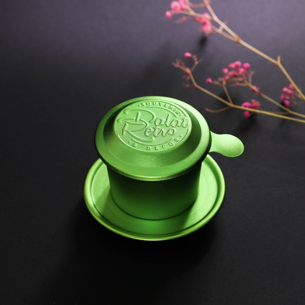 Nhà cửa & Đời sống > Dụng cụ nhà bếp > Dụng cụ pha trà, cà phê || Phin cà phê, bộ, mẫu nhôm anode bắn cát, màu retro green, Dalat RetroCòn hàng