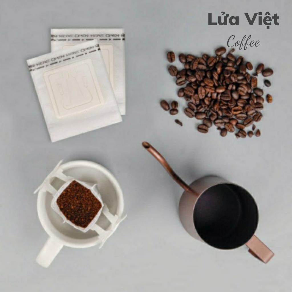 Bạn có thể mua phin giấy về tự bỏ cà phê bột vô, hoặc vào Shop Lửa Việt Coffee để chọn mua bộ phin giấy có sẵn 20g cà phê bột nguyên chất