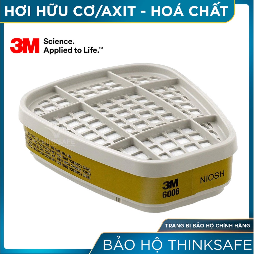 Phin lọc 3M Thinksafe chính hãng, lọc hơi hóa chất hữu cơ/ Axit, phòng độc, chống hoá chất, hơi vô cơ, hữu cơ - 3M 6006