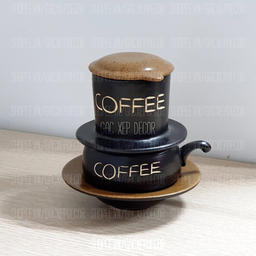 Bộ phin pha cà phê đầy đủ men nâu Bát Tràng* Mô tả sản phẩm: bộ sản phẩm làm từ sứ tráng men trong ngoài, khử chì, an toàn với sức khỏe