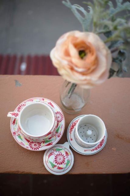 Một bộ sản phẩm bao gồm phin lọc, lõi lọc, cốc cafe sứ và đĩa kê. Được nung ở nhiệt độ cao nên sản phẩm có độ bền tốt, nước men láng bóng, màu sắc bền với thời gian. Đặc biệt không bị bám cáu, bẩn- dễ dàng vệ sinh lau rửa trong quá trình sử dụng.