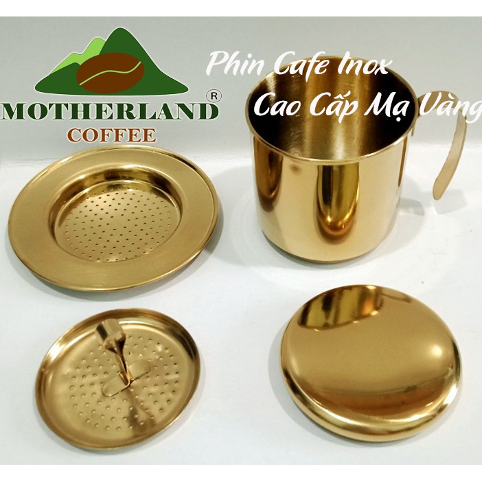 Vì sao nên sử dụng phin pha cà phê inox mạ vàng của Motherland coffeePhin cafe inox mạ vàng được sản xuất bằng công nghệ xi chân không PVD, đảm bảo an toàn cho người sử dụng, hoàn toàn không bị bong tróc khi pha cà phê ở nhiệt độ cao. Phin inox được thiết kế có lỗ phin nhỏ, giúp người pha không chuyên có thể tự mình pha được một tách cafe thơm ngon.