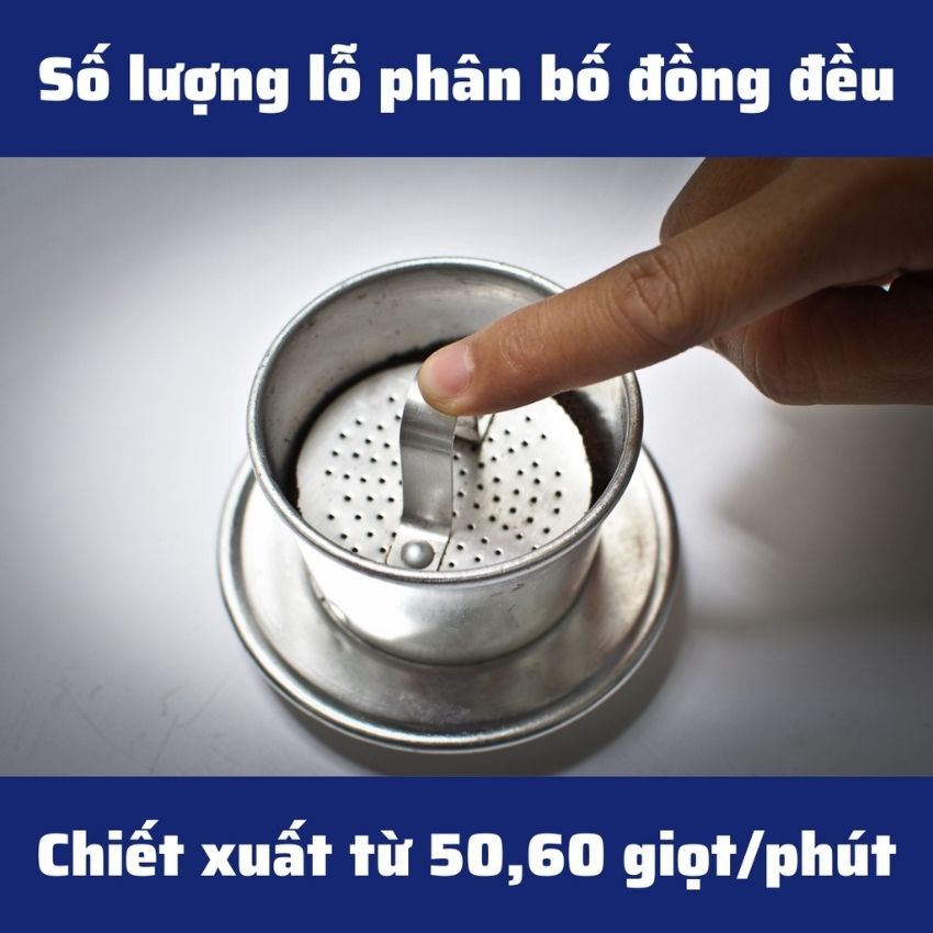 - Số lượng lỗ trên thân phin cà phê inox, đĩa phin bằng nhau và phân bố đồng đều, kích thước lỗ phù hợp để cà phê chiết suất tốt nhất từ 50-60 giọt/phút.