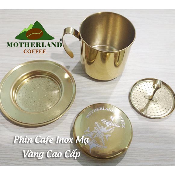 Giới thiệu Phin pha cafe inox mạ vàng khắc hoa lá cà phê