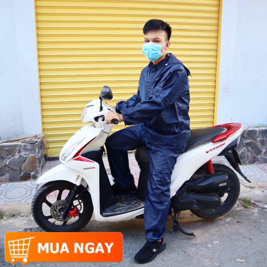 PHISHIP HCM Áo Mưa Bộ Vải Dù Xanh Đen Siêu Bền Không Thấm Nước Nhiều Size Nam & Nữ AM08