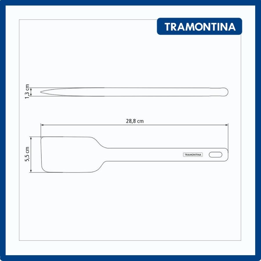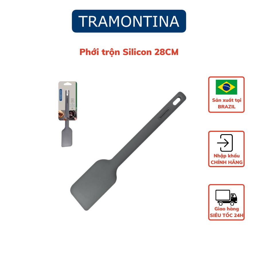Phới trộn Silicon Tramontina MOLDE 28cm cao cấp chịu nhiệt nhâp khẩu chính hãng BrazilTramontina là thương hiệu gia dụng hàng đầu của đất nước Brazil với lịch sử hình thành và phát triển hơn 100 năm. Hiện nay các sản phẩm thuộc thương hiệu Tramontina đã có mặt tại hơn 120 quốc gia với các mặt hàng đa dạng từ đồ gia dụng, tiện ích nhà bếp, đồ nội thất bằng gỗ và nhựa, dụng cụ nông nghiệp và làm vườn, đến dụng cụ bảo trì xây dựng, công nghiệp và ô tô…