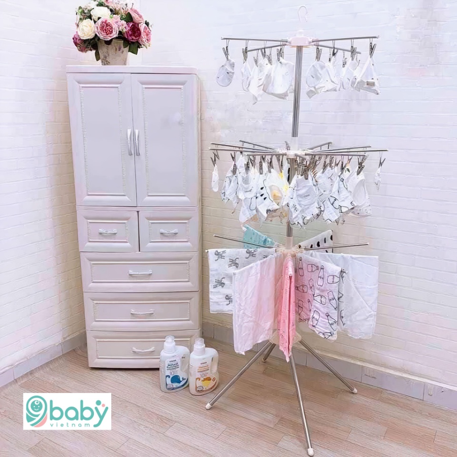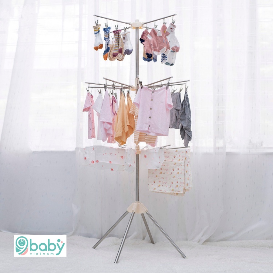 Cây phơi, cây sào phơi đồ inox 3 tầng treo đồ cho trẻ em, bé sơ sinh đa năng 9BABY