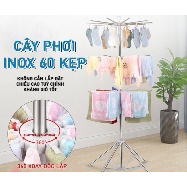 ✌🏻 Với chất liệu inox từ a tới á ko lo gỉ, cổ xoay 360 độ giúp bố mẹ dễ dàng treo đồ mà ko cần phải di chuyển nhiều.