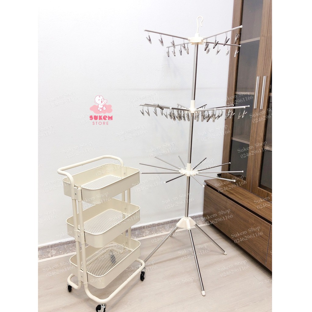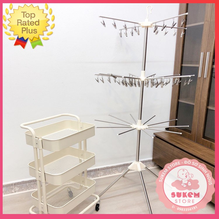 ☀️ Cây phơi quần áo 3 tầng với 3 giá phơi đồ cực kì chắc chắn và tiện dụng, có thể gập gọn khi không sử dụng, móc trùm có thể tháo rời làm 1 móc treo khác