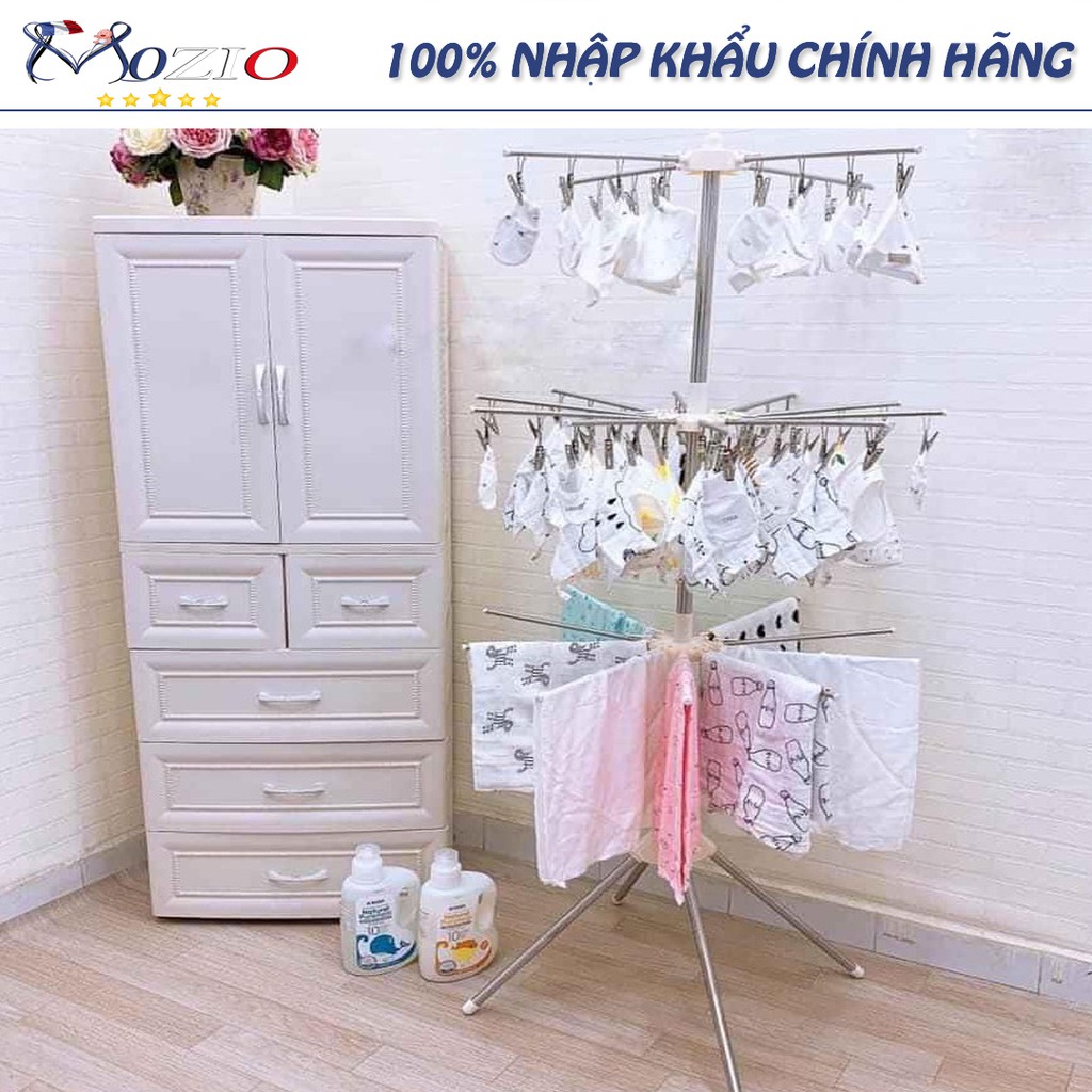 - 3 tầng cách biệt phơi được nhiều đồ, có2 tầng 56 kẹp thuận tiện phơi bao tay, bao chân, khăn cho bé