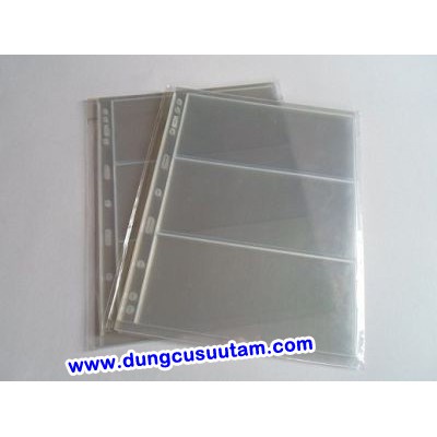 Phơi Đựng Tiền Giấy 3 Ngăn Trong PCCBPhơi đựng tiền giấy PCCB 9 lỗ có thể gắn vừa Album 4 còng PCCB và các loại album 3 còng khác, với kích thước 21.5 x 28cm do hãng chuyên sản xuất dụng cụ sưu tầm tiền PCCB, Đài Loan sản xuất, chất lượng được giới sưu tầm đánh giá cao, hơn hẵn các loại phơi được sản xuất tại Việt Nam. Shop Muabantien.com cung cấp các loại phơi đựng tiền giấy 1 ngăn, 2 ngăn, 3 ngăn và 4 ngăn để phù hợp với kích thước của từng loại tiền sưu tầm.