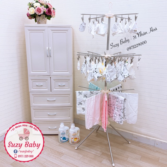 ✌🏻Với chất liệu inox từ a tới á ko lo gỉ, cổ xoay 360 độ giúp bố mẹ dễ dàng treo đồ mà ko cần phải di chuyển nhiều.