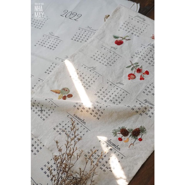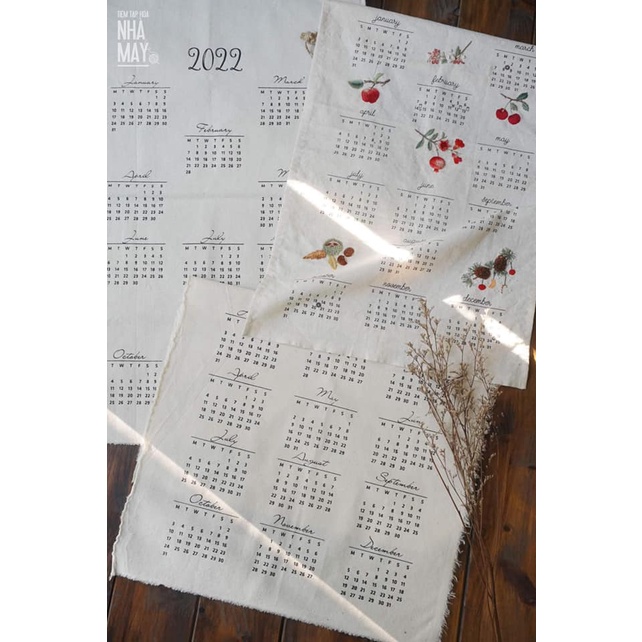 Phôi lịch vải năm 2022 (Phôi nghĩa là chưa có hình thêu và chưa may viền nha mọi người).Phôi lịch vải là tấm đã in sẵn số liệu ngày tháng năm của năm 2022, có chừa lại các khoảng trống để mọi người có thể sáng tạo bằng hình thêu hoặc vẽ hay trang trí lên.