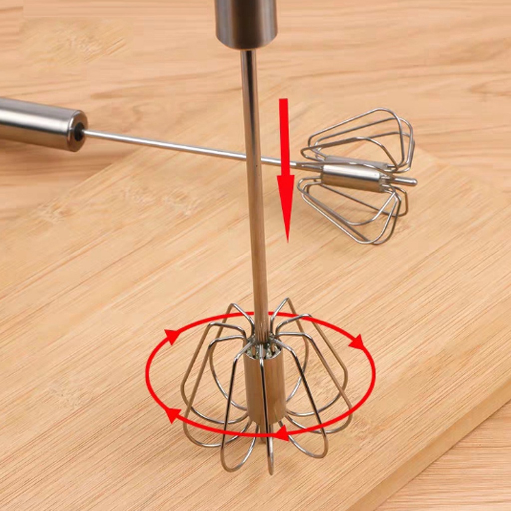 Cây Phới Lồng Đánh Trứng ĐỘNG NĂNG INOX - Dụng Cụ Đánh Bột Có Trục Lò Xo Xoay 360 Độ Tự Động Nhỏ Gọn