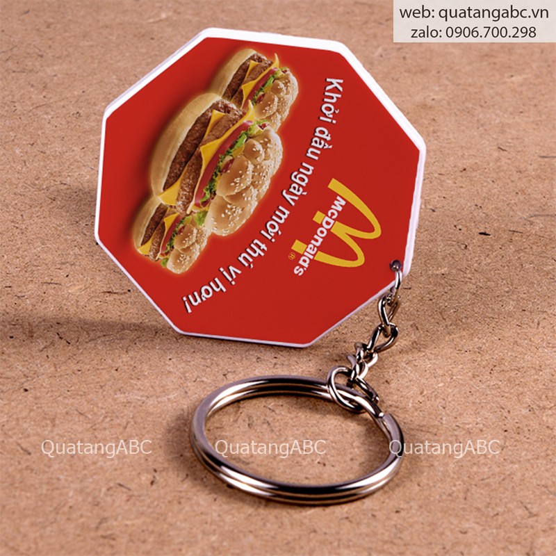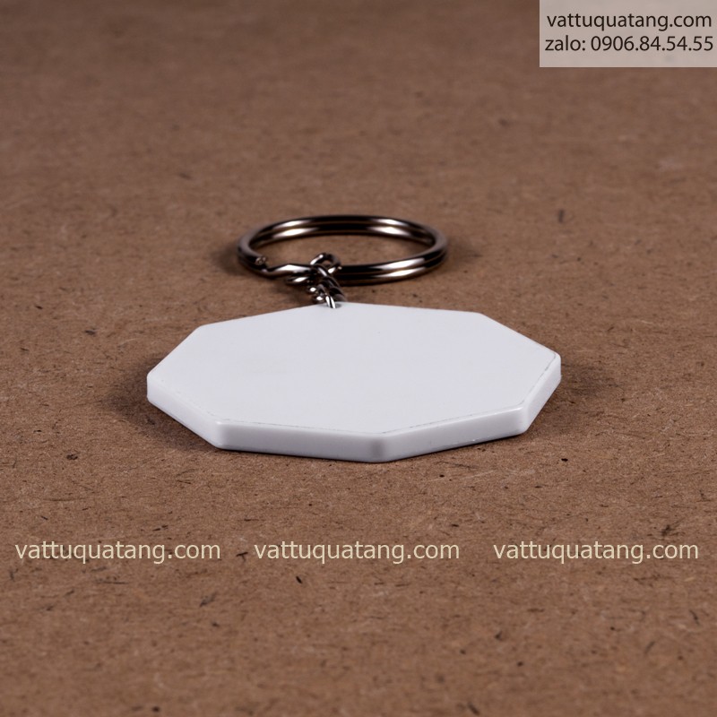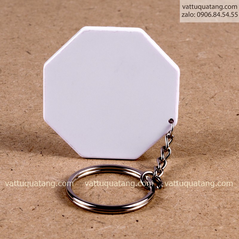 Phôi móc khóa nhựa cứng bát giác. In chuyển nhiệt