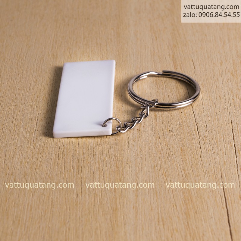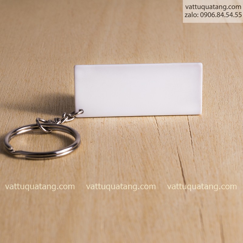 Phôi móc khóa nhựa cứng chữ nhật nhỏ. In chuyển nhiệt