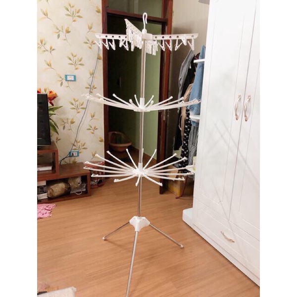 Cây phơi quần áo 3 tầng cho bé khung inox - Cây phơi đồ đa năng dáng tròn