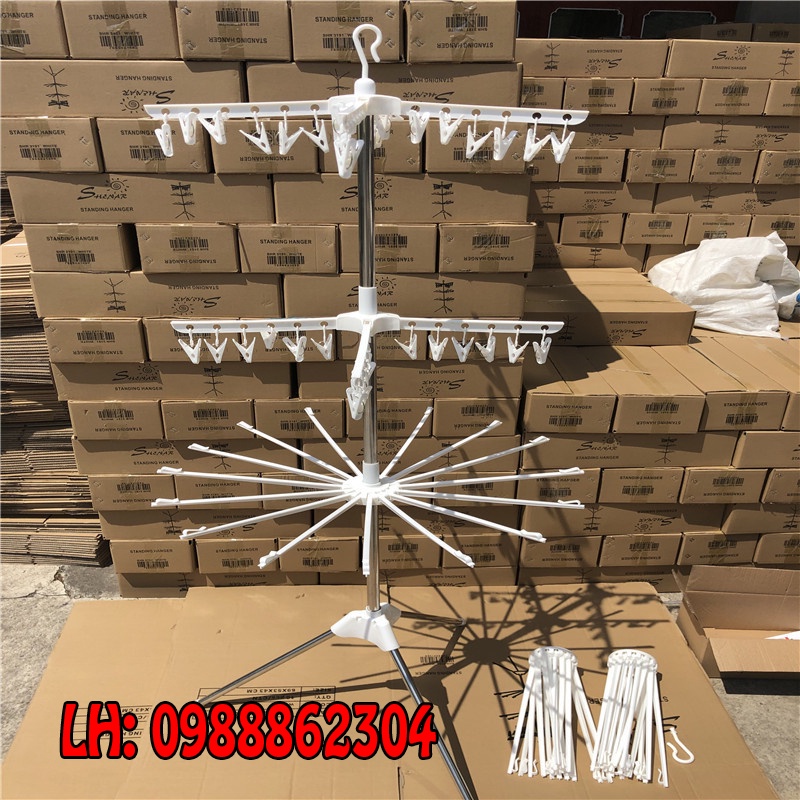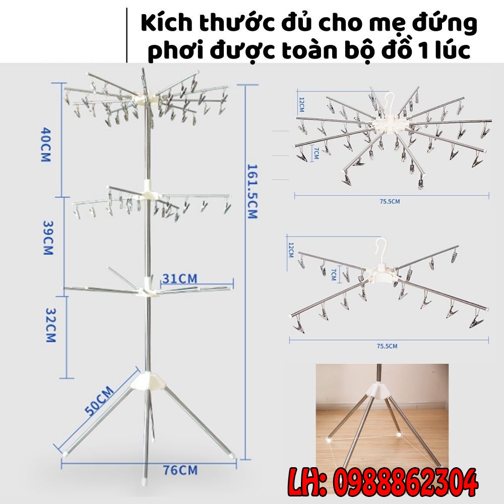 + Cây phơi quần áo inox gấp gọn 3 tầng 56 kẹp móc quần áo cho trẻ sơ sinh.