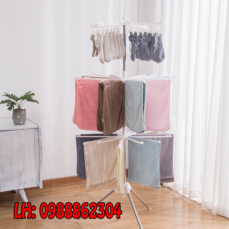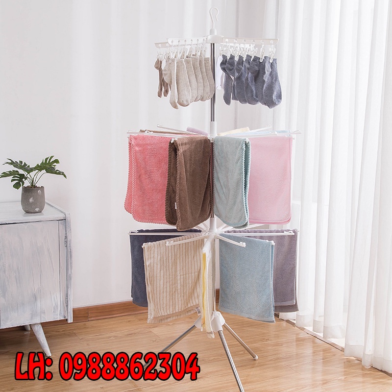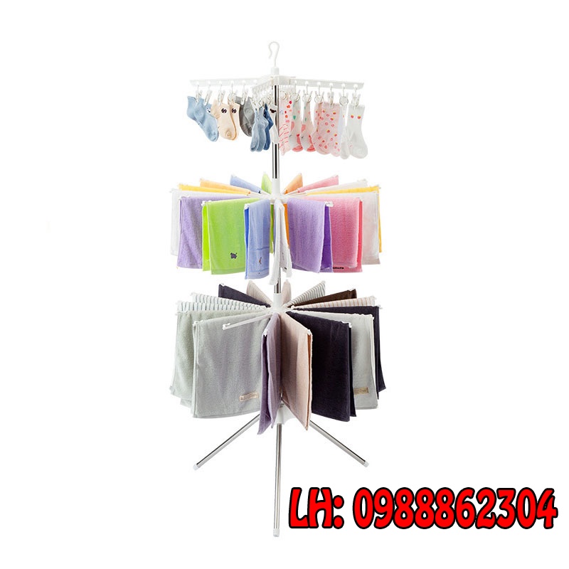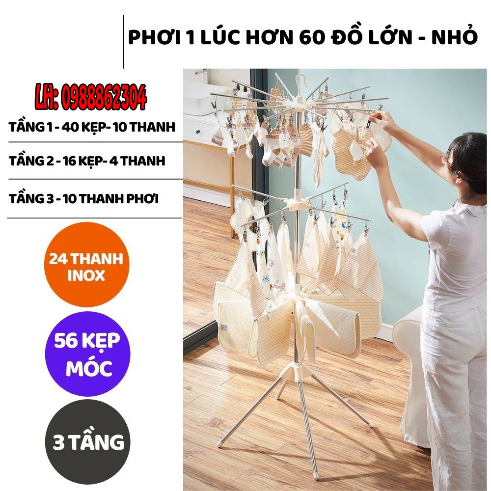 Giá phơi đồ cho bé xoay 360 độ 3 tầng 56 kẹp