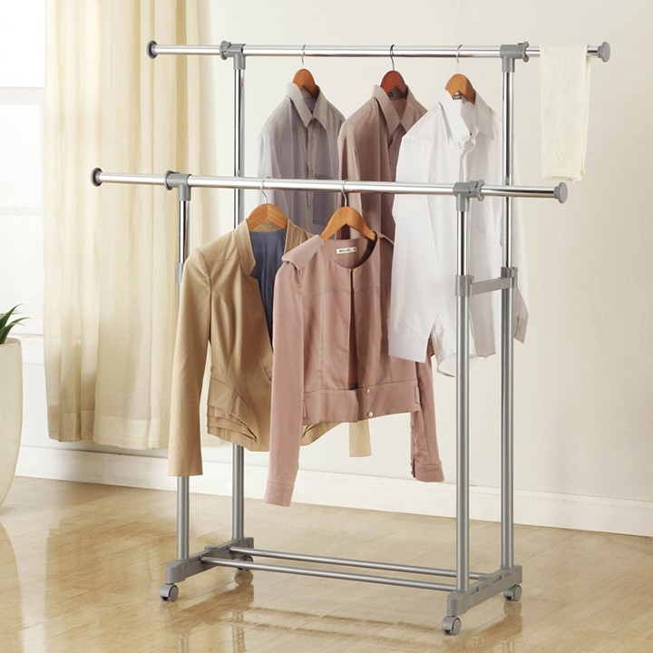 Nhà cửa & Đời sống > Dụng cụ chăm sóc nhà cửa > Dây phơi & giá phơi quần áo || Cây phơi quần áo inox 2 tầng có bánh xe, giàn phơi quần áo tiện dụng FASOLACòn hàng