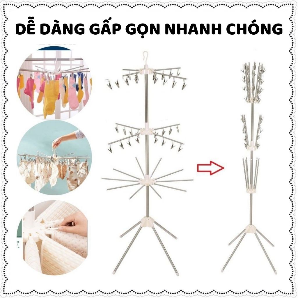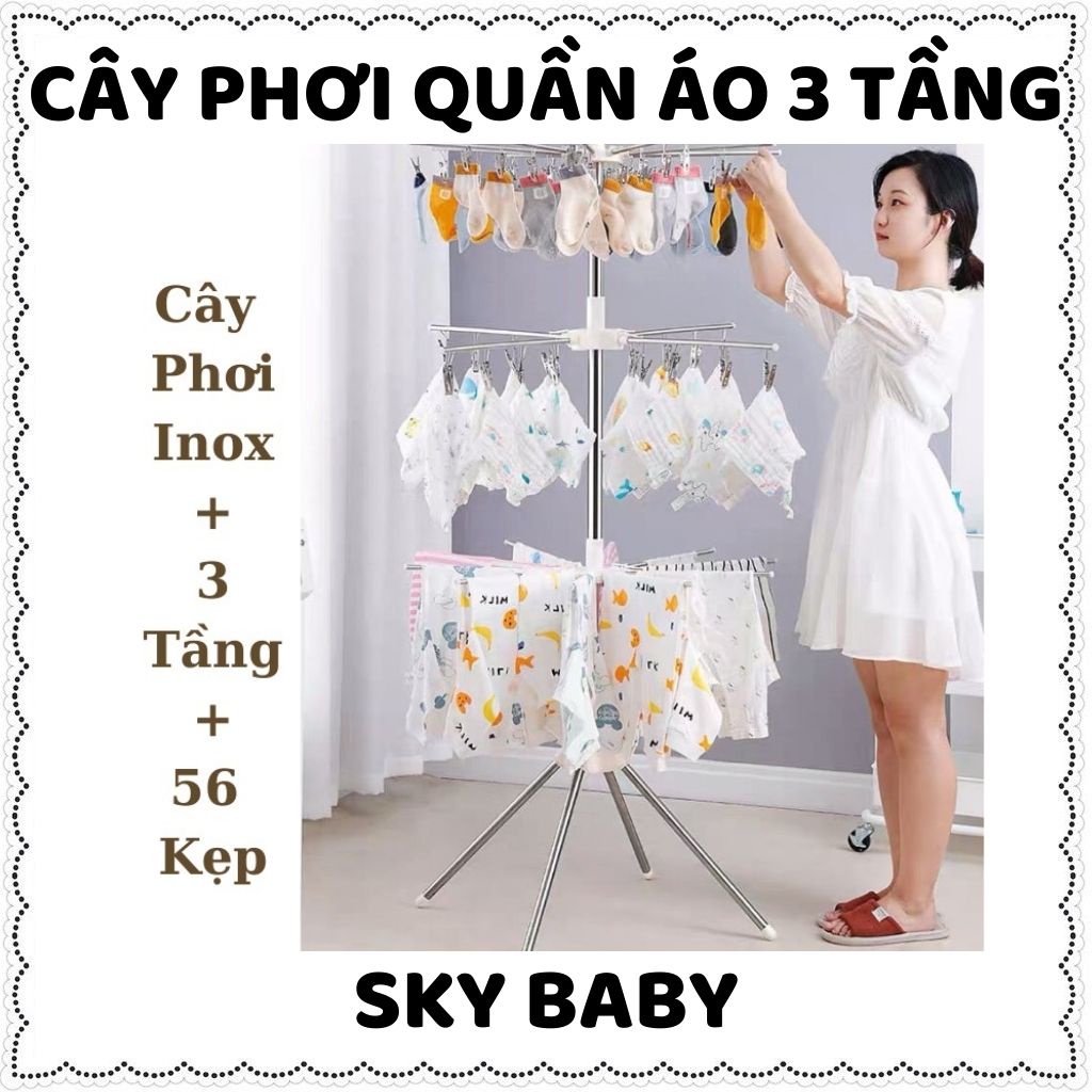 Cây phơi quần áo inox gấp gọn 3 tầng 56- 80 kẹp móc quần áo cho trẻ sơ sinh Zozon